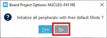 Once the board has been selected, click on “Start Project” and select “No” in the initialize default peripherals dialog.