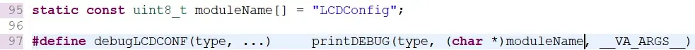 In the same section the macro initDEBUG() and debugMAIN() are added to allow debug messages to be sent over the USART (Universal Synchronous/Asynchronous Receiver Transmitter).