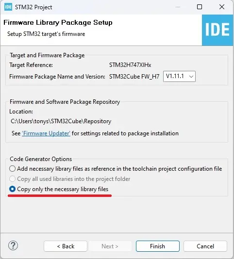 After installation, STM32CubeIDE might request additional downloads depending on the device series integrated into the project. When developing the firmware, an additional download for the H7 series of devices was required.