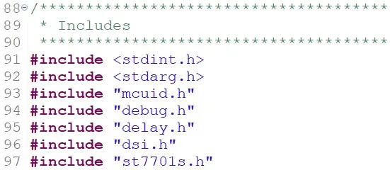 The header files must be included into the main.h file so that the resulting code can be compiled into the firmware. Insert the header files in the code section marked by: /* USER CODE BEGIN Include */. The debug macro can be placed in the section marked by: /* USER CODE BEGIN EM */. Modifications to main.h are shown in the image below: