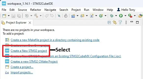 Open STM32CubeIDE and select “Create a New STM32 Project” from the available selections.